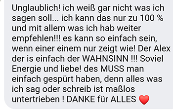 Wir wissen, dass tiefgreifende Transformation Mut braucht. Sie ist nicht immer bequem, aber sie ist notwendig, wenn du dich wirklich befreien willst von alten Prägungen und familiären Mustern, unbewussten Schutzmechanismen, emotionalen Blockaden, falschen Selbstbildern, kontraproduktiven Programme, etc.